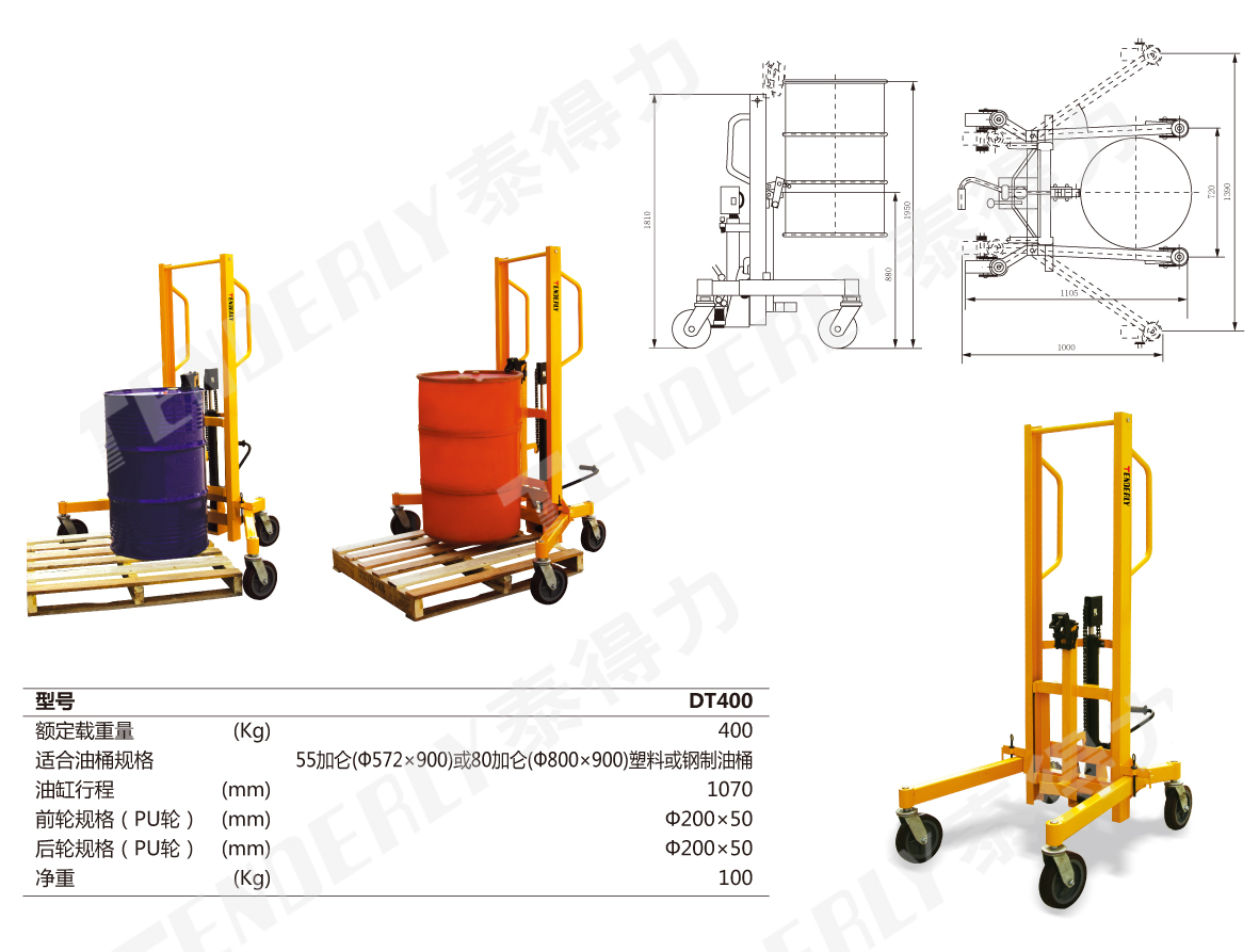 ● 适用于搬运或堆放55加仑的钢制油桶或带厚边的塑料闭口桶