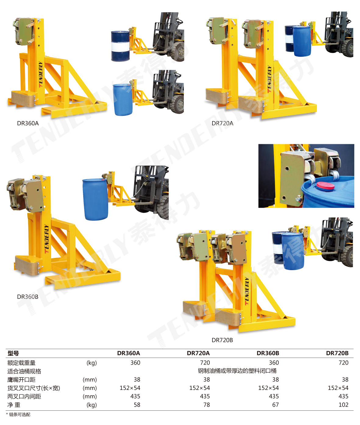 ● DR360B、DR720B采用独特的柔性双鹰嘴设计,抓取更牢固、更安全,并可有效地保护桶边