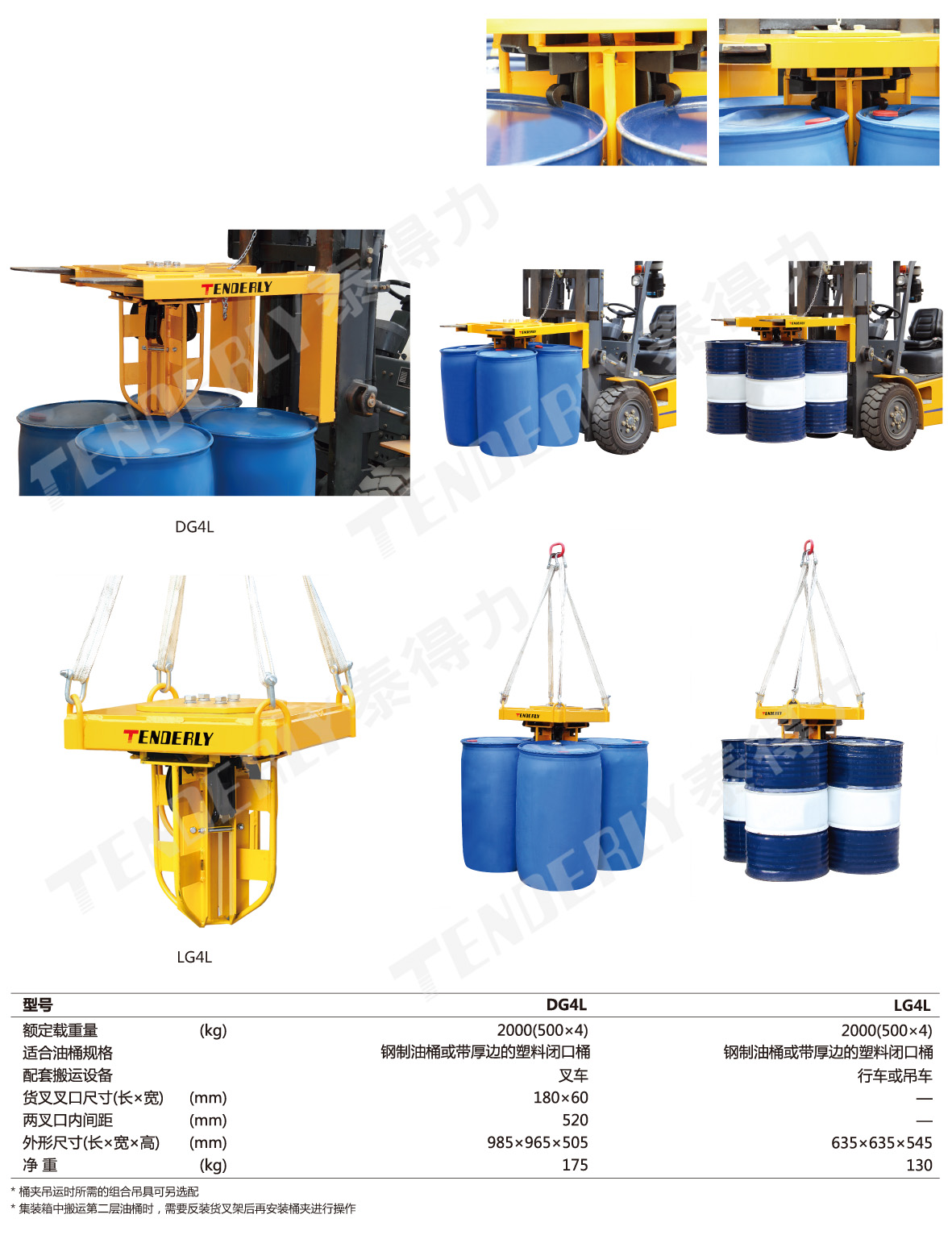 ● LG4L适用于一次搬运1到4个桶,仅限与行车或吊机配合使用