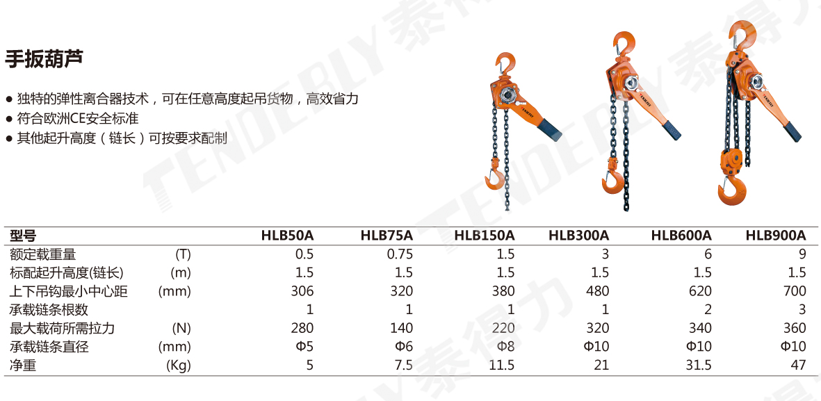● 独特的弹性离合器技术,可在任意高度起吊货物,高效省力