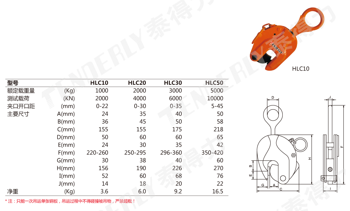 ● 泰得力HCL型钢板吊夹适用于垂直吊运或旋转钢板或结构件