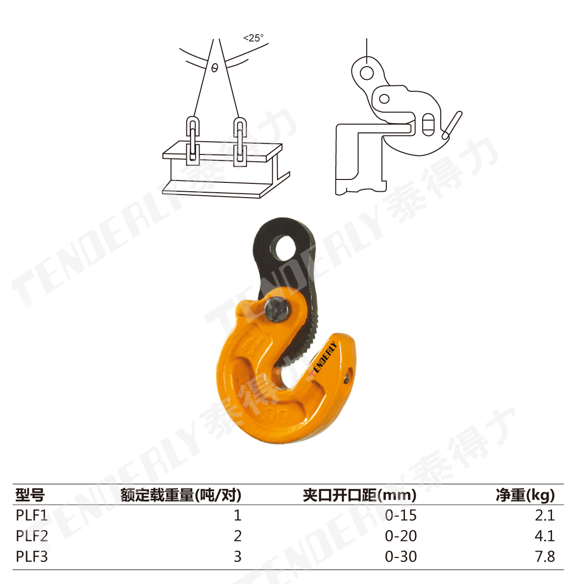 ● 泰得力PLF型钢板吊夹适用于垂直吊运、水平吊运、翻转钢板或型钢结构件
