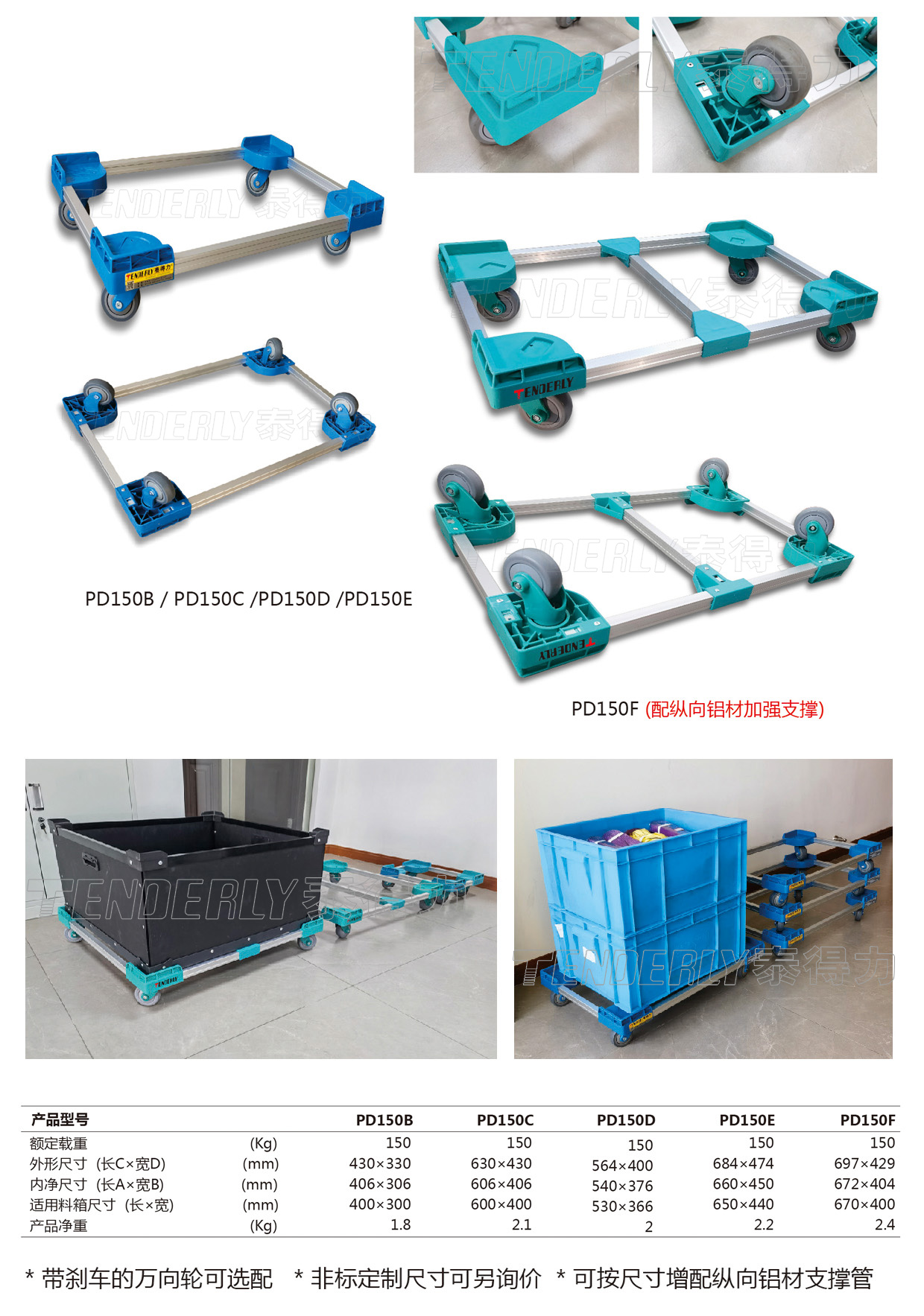 ● 标配4只TPR万向脚轮(无刹)及PP轮架,推行特别灵活且静音