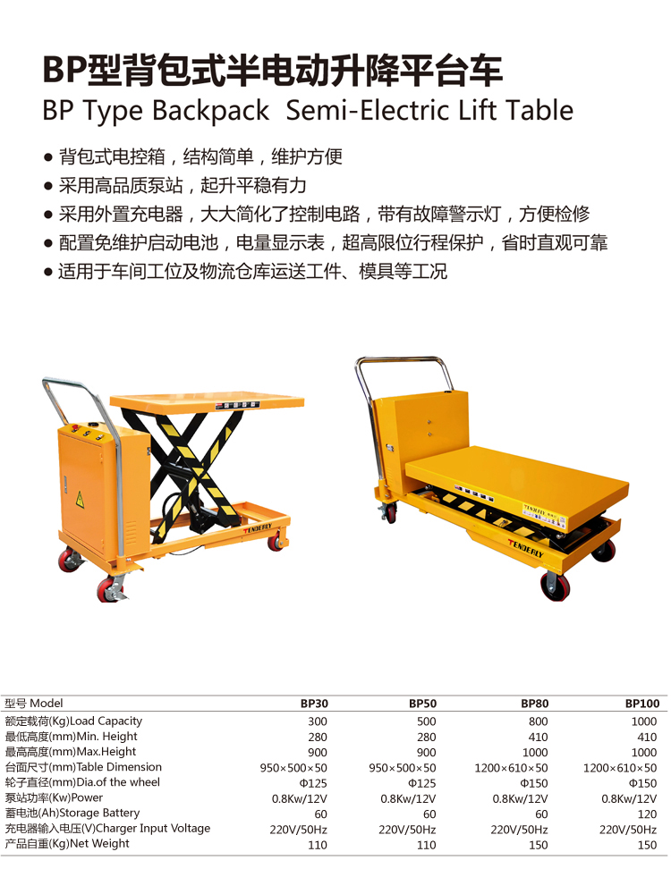 BP型背包式半电动升降平台车