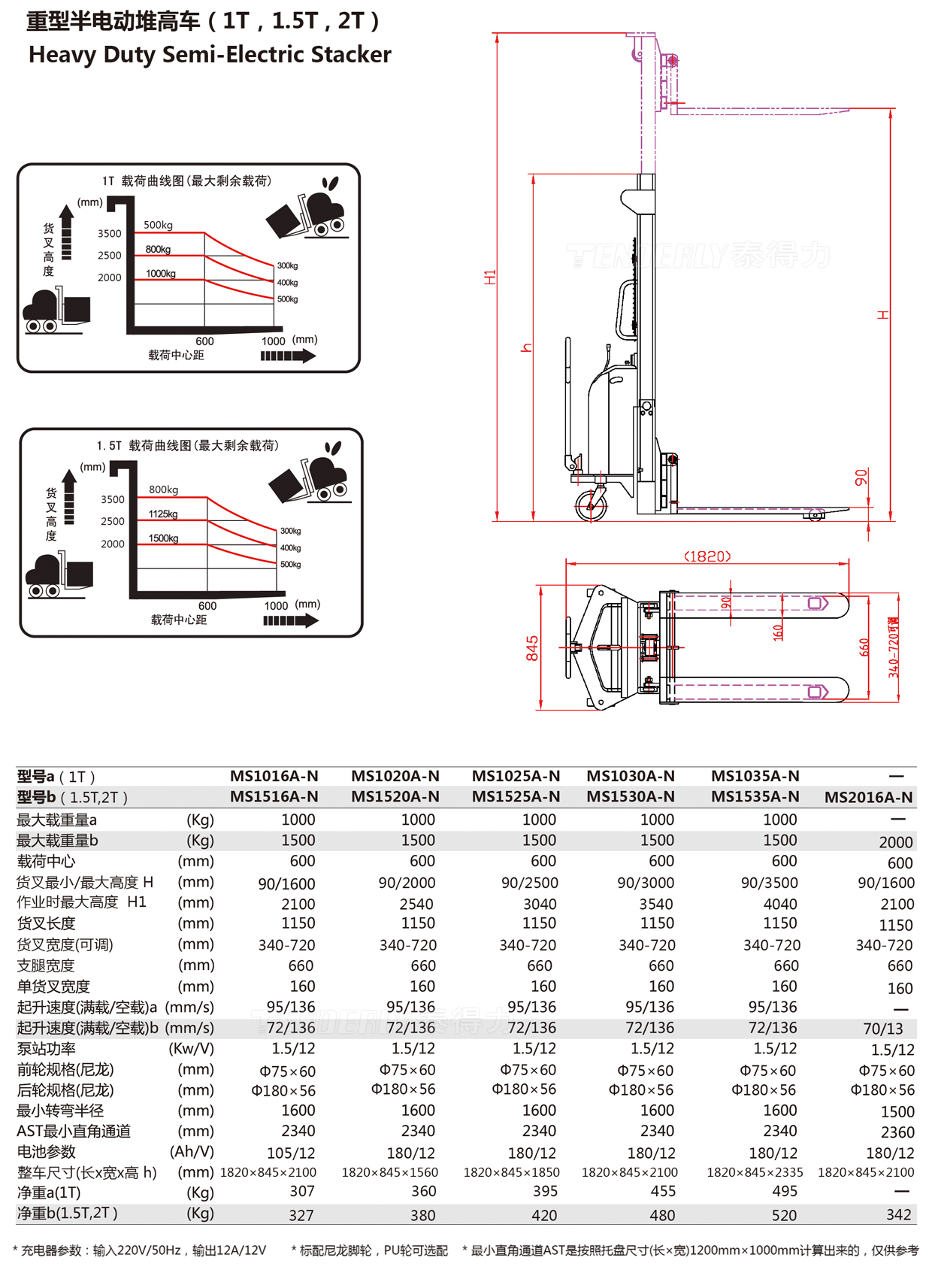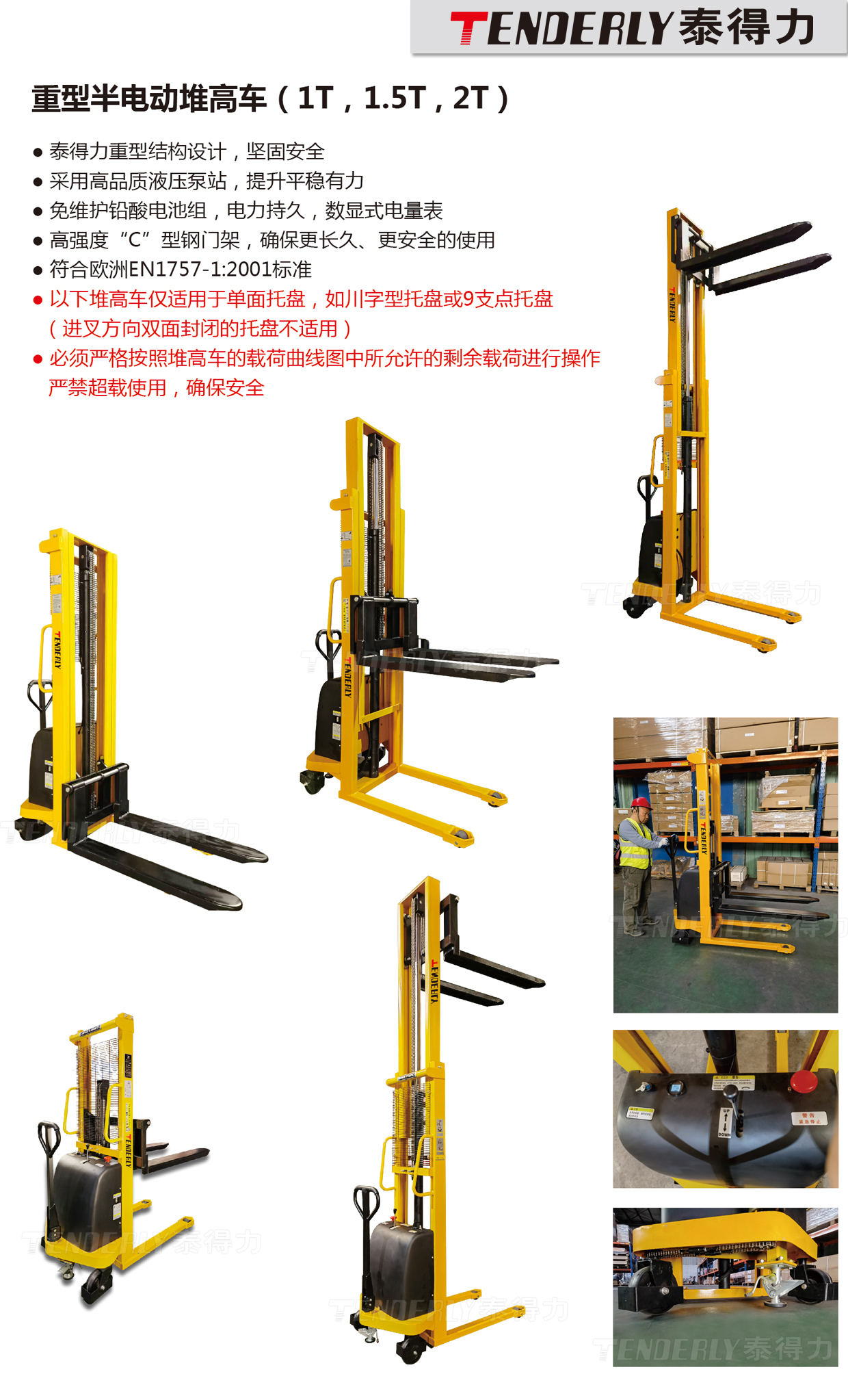 重型半电动堆高车(1T,1.5T , 2T)